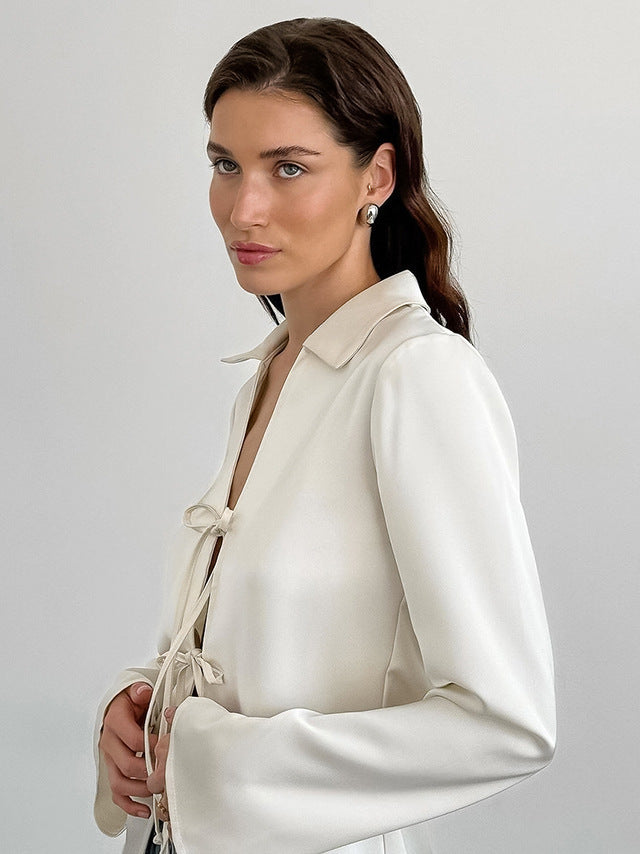 French style imitation acetate satin tie slit lapel lining