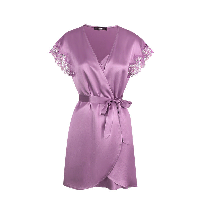 Silk suspender robe set