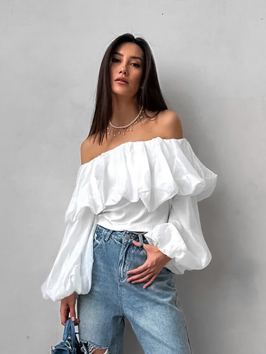 Summer new one-shoulder puff sleeve fashionable casual sexy shirt